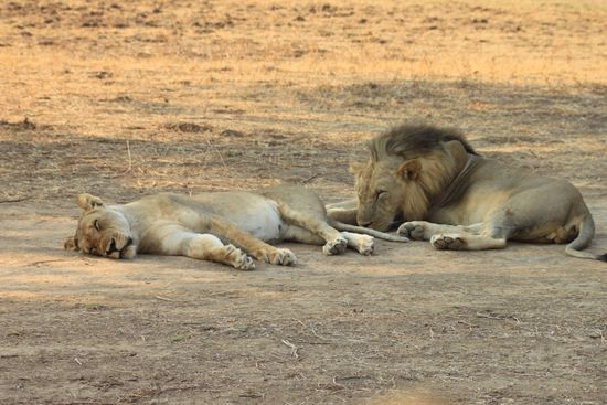 Anfänglich lagen alle 5 Löwen gelassen und relaxed auf dem Boden. Nachdem wir diese friedliche Truppe für 30 Minuten bestaunt hatten, kam plötzlich Action auf.