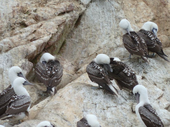 Wir wussten kaum, wohin wir sehen sollten, überall Vögel, Gekreische, tosendes Meer. Unser Boot kam manchmal bedenklich nah an die Felsen, der Kapitän versuchte für uns die besten Orte für Fotos zu bekommen. "Anhalten ist unmöglich" erklärte Isabel, die nette Sprecherin, aber diese Erklärung hätten wir nicht gebraucht, wir fühlten ja selber, wie das Schiff mit den Wellen kämpfte, hatten aber überhaupt keine Zeit, uns darüber Sorgen zu machen, zu interessant war das, was wir zu sehen bekamen.