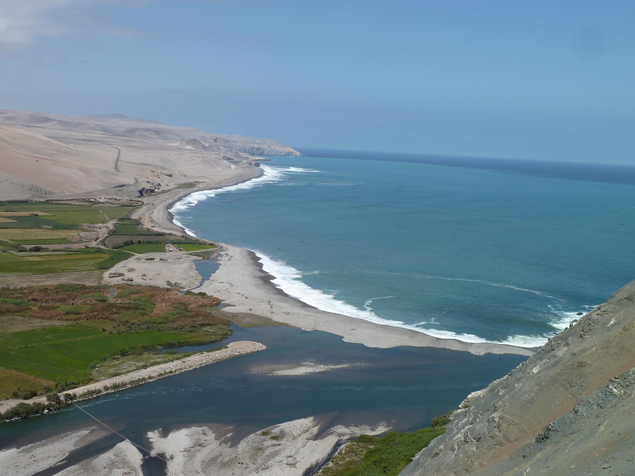 Nachdem alle Koffer im Bus verfrachtet waren, verliessen wir Nasca in heiterster Laune. Zuerst säumten noch Felder unsere Strecke. Mais, Baumwolle, Artischocken und Kaktusplantagen konnten wir erkennen. Dieser spezielle Kaktus wird angebaut, um die Läuse zu züchten, deren rote Farbe als Grundstoff für Lippenstifte dient.