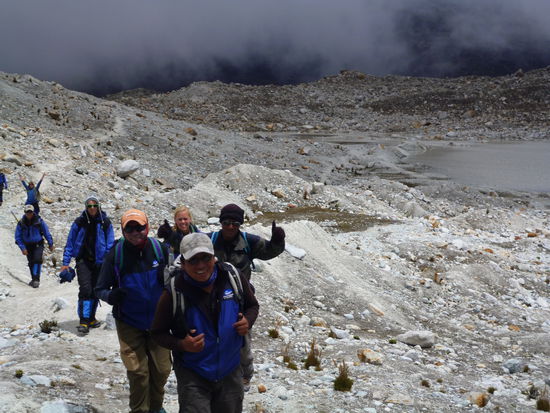 der erste Abschnitt bedeutete naehmlich mit allem Gepaeck !!! ( sau schwer .. durch die ganze Ausruestung) zum Highcamp ( 5100 m ) zu wandern .. ja richtig war eher Wandern und ueber Steine klettern .. kein Eis .