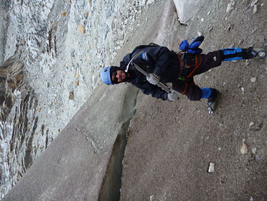 kleine Pause, 2 Kekse , 2 Schluck Wasser ... weiter ... steiler .. kaelter ... mehr gefaehrliche Eisspalten und Steile Haenge.... dann um eine Kurve .. und dann tat ich einen fatalen Fehler :