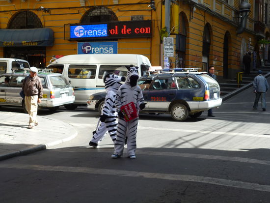 die Zebras regeln hier den Verkehr ... ansonsten ist La Paz aber nicht so der Wahnsinn ... Tagsueber laut .. voll und Nachts nicht so viel los und arsch kalt ( knapp 4000 m )