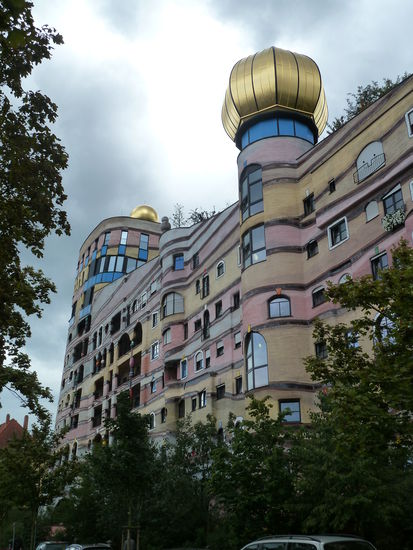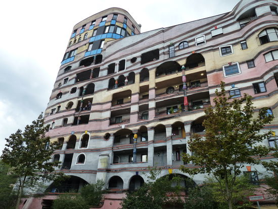 Die "Waldspirale" wurde zwischen 1998 und 2000 erbaut. Die revolutionäre, farbenfrohe und von irregulären Formen geprägte Architektur des berühmten Friedensreich Hundertwasser zeigt sich hier in ihrer ganzen Pracht.