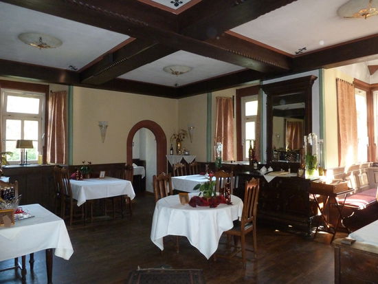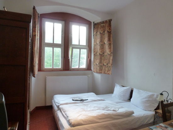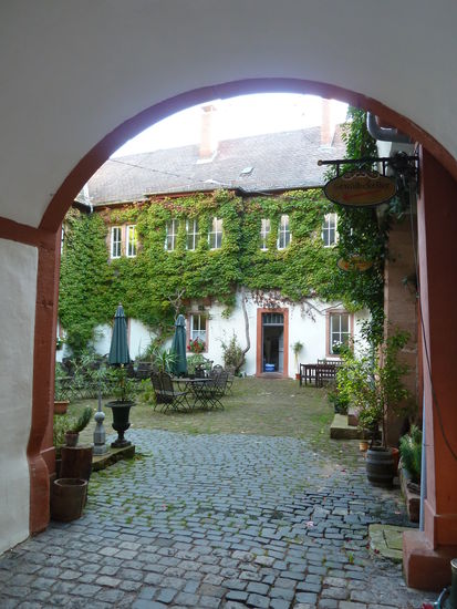 Am späten Nachmittag erreichen wir dann unser gebuchtes 4*-Hotel Schloßhotel Rothenbuch. Von außen sieht es recht hübsch aus, der Innenhof ist zwar etwas verwahrlost aber nicht ohne Flair.