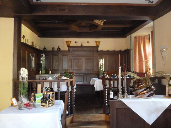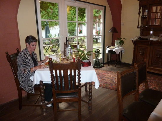 Zum Abendessen 'müssen' wir in einen Nebenspeiseraum, da eine größere Veranstaltung mit 'medieval banquet' im Hause stattfindet. Die dort schon sitzenden Gäste sprechen uns an und geben hinsichtlich des Essens Ratschläge 'nehmen Sie diese Vorspeise besser nicht!' - Ein Pärchen, das nach uns kommt, findet die Einrichtung trödelmarktähnlich. Zudem dauert alles etwas länger, da die einzige sichtbare Kraft eine junge Frau im 1. Lehrjahr ist und manches ist auch 'out', da ja eine größere Veranstaltung läuft.