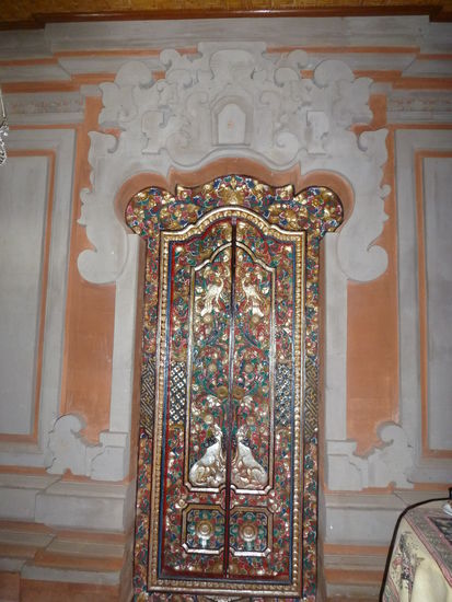 Direkt nach Kuta gings dann mit dem Bus nach Ubud. Dort hat uns eine ganz liebe Spanierin ein super Homestay empfohen. Homestay ist das zu Hause von jemanden der auch Räume oder Bungalows vermietet. So kamen wir zu einem Hinduistischen Priester und seiner Familie. Das war die aussergewöhnlichste Unterkunft die wir je hatten. Wir wohnten in Mitten eines Tempels unser Bungalow hatte Tueren mit goldenen Verzierungen etc.