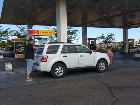 Nach dem Frühstück im Hotel müssen wir erstmal volltanken.