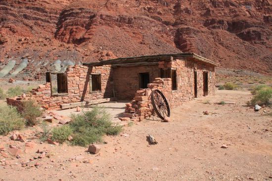 Dort wurden früher um die Jahrhundertwende, als es noch keine Brücken über den Colorado River gab mit einer Holzfähre übergesetzt.