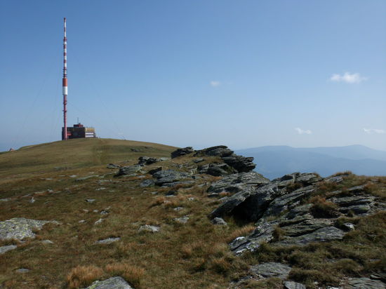 Mit dem Blick nach Norden auf die Hohe Tatra muß das ein Erlebnis besonderer Art sein, denn die Hohe Tatra zeigt sich tagsüber von Quellwolken verhüllt, aber abends und morgens erstrahlt sie in voller Schönheit, sagt uns ein Wanderer.