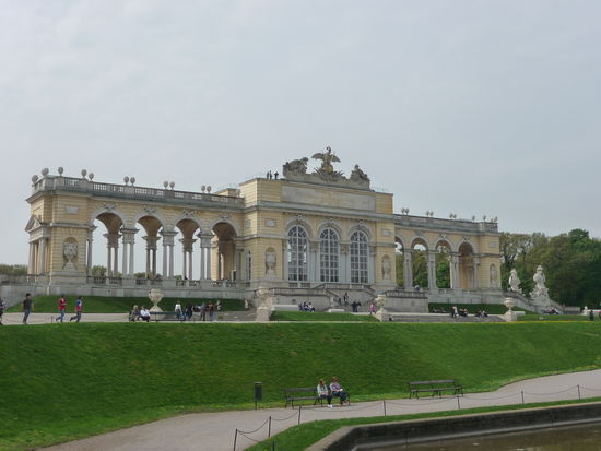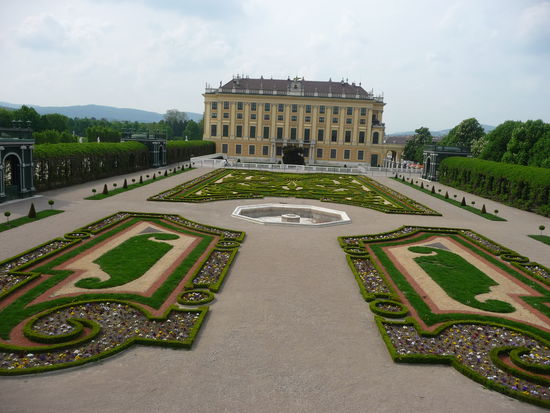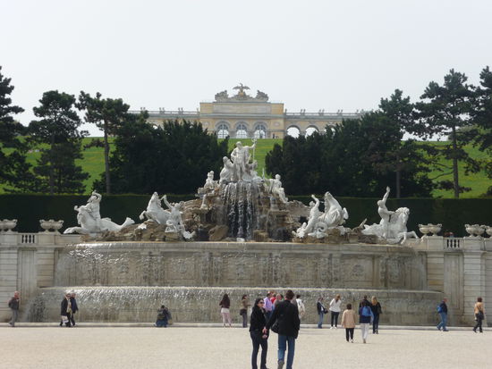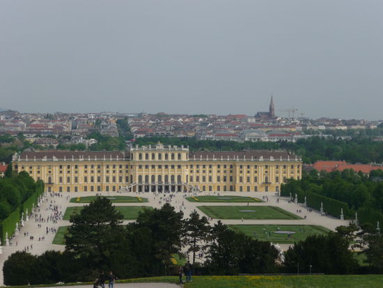 Hier verteilten sich die Besucherströme - die Innenräume des Schlosses wollten wir erst am Nachmittag anschauen. Von der Gloriette aus hatten wir zunächst einmal einen tollen Überblick über die Schlossanlage, den Park und die Stadt Wien.