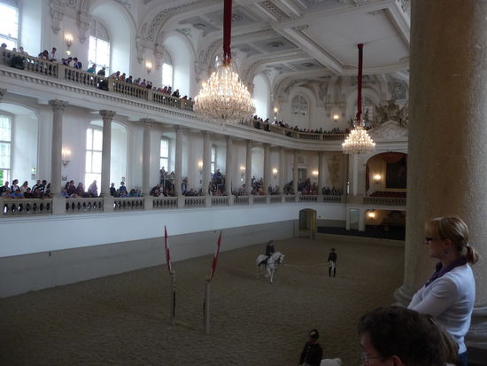 An unserem letzten Tag steuerten wir zunächst die Spanische Hofreitschule an, um hier ein bisschen bei der Morgenarbeit zuzuschauen. Im imposanten Ambiente der barocken Winterreitschule bot sich uns ein Einblick in die Trainingsarbeit der Bereiter mit ihren Lipizzaner-Pferden. Das Ganze untermalt mit klassischer Musik.