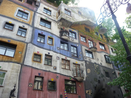 Zu Fuß machten wir uns durch ein eher weniger reizvolles Stadtviertel zum Hundertwasserhaus bzw. zum Kunsthaus Wien, in dem die Werke des berühmten Sohnes der Stadt Friedensreich Hundertwasser ausgestellt sind.