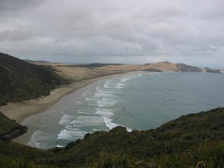 Da am Montag noch Feiertag ist, entscheiden wir uns dafuer nach Cape Reinga zu fahren. Die Fahrt von Kerikeri aus, dauert ca. 3,5 h. Da wir leider kein 4wd haben muessen wir durchs Landesinnere fahren, was allerdings auch nicht so schlimm ist. Am Cape angekommen, sind wir etwas entauscht. Hatten uns das Ganze etwas spektakulaerer vorgestellt. Leider steht dort nur ein kleiner Leuchturm und man schaut aufs Meer runter. Es ist nicht so, dass es nicht schoen ist, aber leider haben wir kein besonders gutes Wetter und hatten uns es nach den ganzen Erzaehlungen einfach toller vorgestellt.