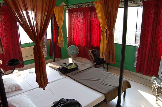 Damen und Herren stellen sich getrennt voneinander an, also ich als einzige bei den Damen, die Beamtin dort hatte mal grad gar keine Lust und schickte mich wieder zu den Herren, Ich wieder auf die andere Seite, die mich wieder auf die Damenseite geschickt. Dort war die Beamtin zwischenzeitlich verschwunden.... Ich wieder zu den Herren "da ist aber niemand", egal zurück und durch. OK, ich durch die verwaiste Kontrolle durch, zurück zu Jürgen, gefragt, ob ich auch einen Kontrollstempel auf die Bordkarte bekomme. Da guckten mich aber zwei grosse braune Augen fragend an und meinten dann, dass ich den doch bei der Kontrolle bekomme. DA ist dann endlich der Groschen gefallen, das dort keiner ist. Also eine Beamtin mit mir wieder dahin und da wurde ich dann auch kontrolliert und bekam meinen Kontrollstempel. Zwischenzeitlich musste Jürgen die Tasche öffnen und leider haben wir vergessen, den Whisky den wir in Frankfurt gekauft haben, (für die gesundheitliche Magenversorge) aus dem Handgepäck zu holen und umzupacken. Also graue Tonne , über diese ganze Diskussion dann vergessen, den Handtaschenkontrollstempel zu bekommen, aber das ist uns dann doch noch früh genug aufgefallen (es gab Leute, die mussten statt in den Bus zum Flieger wieder zurück und neue Kontrolle, das hatten wir dann hinter uns.) So, mittlerweile 5.30 am morgen, in den kleinen Flieger rein und da haben wir erst mal geschlafen. Knapp 2 h später sind wir dann in Udaipur gelandet. Hier hat uns dann der Fahrer vom Hotel/GH dann auch, wie verprochen, abgeholt.
