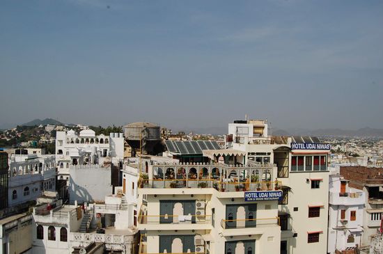 Im Hotel angekommen, natürlich viel zu früh für Check In, haben wir uns auf der Dachterasse erstmal mit einem Frühstück gestärkt. Hier in Udaipur ist es nicht ganz so drückend wie in Mumbai und tatsächlich war es heute morgen auch leicht kühl, so dass es uns in unseren langen Klamotten auch nicht zuu warm wurde.