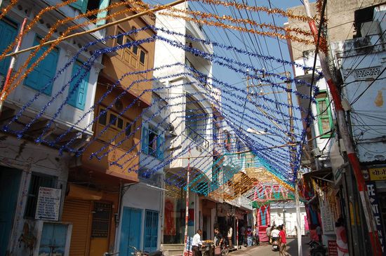 Die Stadt ist immer noch etwas geschmückt vom vergangenen Diwali (Lichterfest)