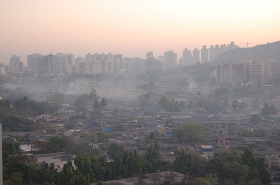Am Morgen haben wir den Sonnenaufgang über Mumbai auf der Dachterasse genossen
