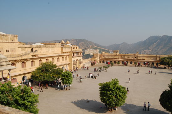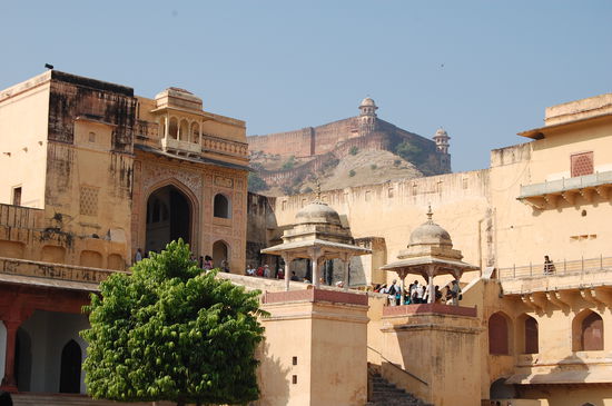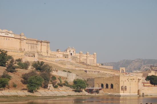 Um 9 Uhr haben wir wie verabredet unseren Fahrer getroffen. Dieser stellte uns dann gleich jemanden vor, der dann heute unser Guide ist. Wir sind erstmal ca. 12km raus aus der Stadt zum Amber Fort. Es gibt hier drei Forts, wobei das Amber Fort das grösste und auch schönste ist.