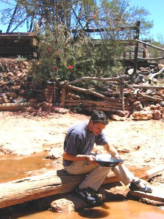 Unsere erste Anlaufstelle war eine stillgelegte Mine, welche jetzt für Touristenzwecke umgebaut ist -"hall of fame". Für schlappe 17,50$ Eintritt musste beim Goldwaschen mindestens eine Zahnfüllung raus springen (der Preis versteht sich natürlich inkl. Studentenrabatt!). An einem künstlich angelegten Bächlein konnte man sich dann also ein paar Jahrzehnte zurück versetzen und mit dem typischem Goldgräberutensil (Teller und Blechdose) sein Glück versuchen.