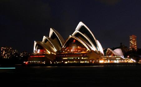 Bis nach Sydney passierten wir noch einen kleineren Nationalpark und schwebten dann pünktlich 10 Uhr a.m. nahe Hide Park in einer Tiefgarage ein. Eigentlich wollten wir uns ja gleich mit Heidi und Christine treffen, aber irgendwie hatten wir da was mit der Zeitverschiebung zwischen Canberra und Sydney durcheinander gebracht. Egal, so konnten wir schon ein klein wenig durch die Weltstadt streifen und trafen uns dann später mit den Mädels, um deren letzten Abend in Australien würdig abzuschließen. Nach ausgiebigem Dinner beim Italiener (Stadtteil Sydney "The Rocks") schlenderten wir zur weltbekannten Oper.
