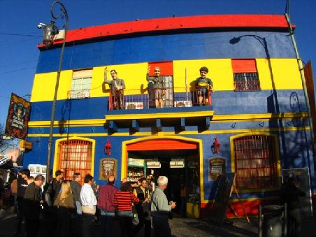 Im Stadtteil "la Boka". Auf dem Balkon kann man Evita, Diego Maradona und einen Regierungspräsidenten sehen!