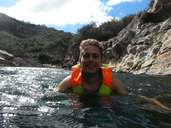 Fuer uns ging es am naechsten Morgen direkt weiter zum Canyon, welcher erst vor ca. 5 Jahren touristisch entdeckt wurde.Wir wanderten durch den Canyon, teilweise mussten wir schwimmen, klettern oder springen. Die Breite des Canyon varierte staendig von sehr schmal bis hin zu sehr breit.