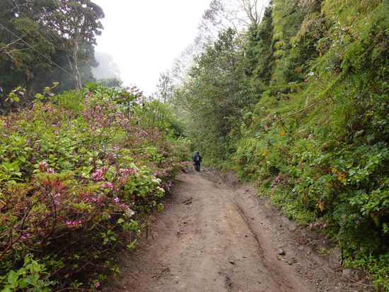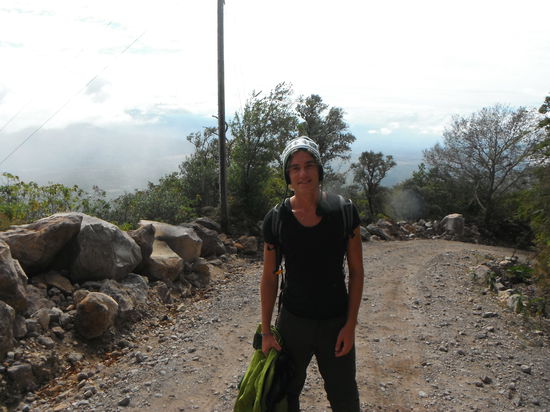Somit wurden wir puenktlich um 23:30 mit dem Taxi auf 1800 m gefahren! Sinn der Nachtwanderung ist die Beobachtung des Sonnenaufgang am naechsten Morgen! Nun sollte es allein mit einer Taschenlampe und bischen Verpflegung in einer 6 Stunden Wanderung auf den Gipfel gehen! Da der Aufstieg extrem steil war, nahm es uns einige Kraft! Mit jedem Hoehenmeter wurde es kaelter und gegen 5:30 standen wir dann auf 3500 m auf der Spitze des Vulkan! Und zwar bei einer Temperatur um den Gefrierpunkt und heftigem Wind! Da wir noch 30 Minuten bis zum Sonnenaufgang hatten, froren wir uns fast zu Tode! Doch da wir extrem muede waren, schafften wir es tatsaechlich noch ein paar Minuten zu schlafen! Gegen 6:15 hatten wir dann eine spektakulaere Aussicht auf : "Nichts" . Es war so bewoelkt, dass wir weder den Sonnenaufgang, noch die beiden Ozeane gesehen haben! War sehr enttaueschend und immer noch bitter kalt!
