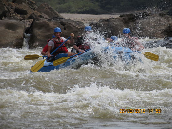 War eine heftige Herausforderung, sehr anstrengend aber absolut cool! Teilweise war das ganze Boot unter Wasser, dann surften wir wieder auf einer Welle und ein anderes mal fiel der Australier von Bord!