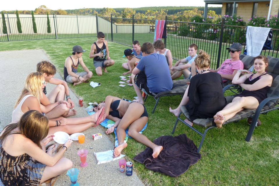Es wurde die private! Wir sind am Nachmittag schon dort hin gefahren, um bei dem schönen Wetter an den Pool zu gehen. Jade, so heißt die Tochter des Hauses, lebt mit ihren Eltern etwas auf dem Land, mit großem Haus und schicken Pool! Ist hier in Australien ziemlich normal, einen Pool zu haben, macht bei dem Wetter auch wirklich Sinn! Sie war recht nett, wobei ihre Freundinnen noch ein wenig herzlicher waren. Es wurde am Nachmittag schon ordentlich gefeiert, die Stimmung war sehr ausgelassen. Das ist hier in Australien wirklich was komplett anderes! Die Leute hier sind hier total offen und gastfreundlich, obwohl sie einen gar nicht kennen, da können wir echt was von lernen!