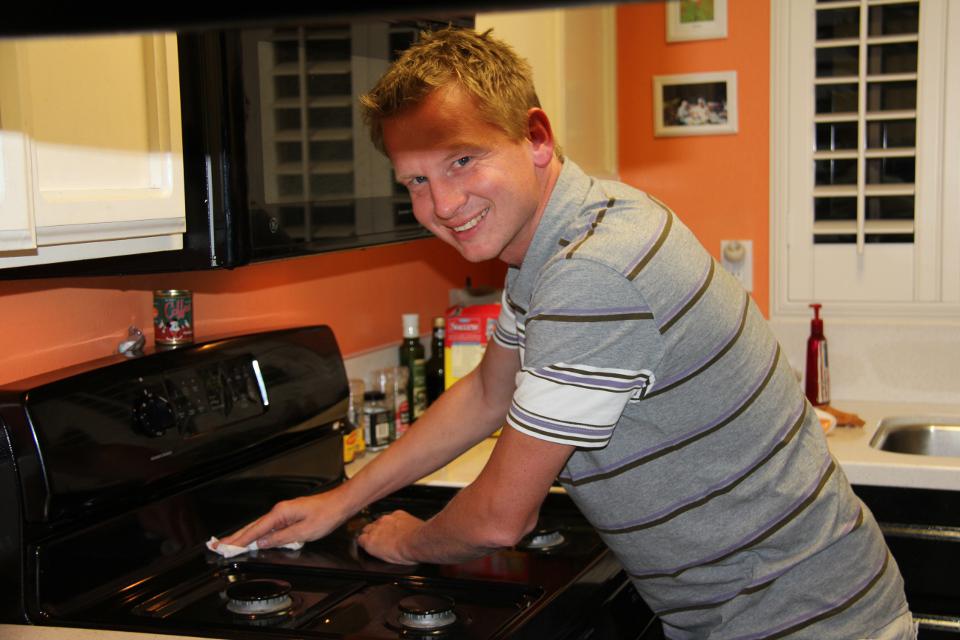 Marc bekam dann noch die super Aufgabe den Herd zu reinigen. Er hat lange versucht sich zu drücken, aber er macht es sooooo gut! Das musste festgehalten werden.