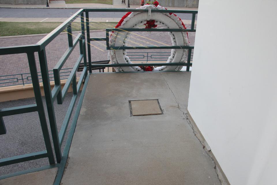 Die Stelle an der er ermordet wurde, haben sie durch einen Betonstein im Boden des Balkons gekennzeichnet. Das Fotos verboten waren, habe ich in der Hektik irgendwie nicht zur Kenntniss genommen. Hups.
