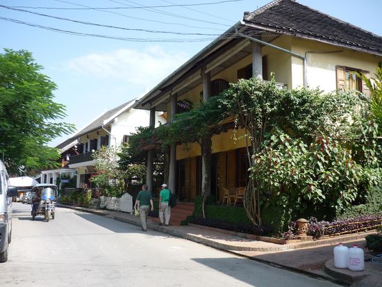 Luang Prabang kommt mir ein bisschen irreal und wie eine Filmkulisse vor..es ist total ruhig, sauber, nett hergerichtet, ueberall Laempchen und nett aussehende Laeden, sehr touristisch, aber trotzdem ohne diese Party- Areas (...naja, zumindest nicht in der Innenstadt - aber dazu spaeter), eher auch fuer ein aelteres Publikum gut geeignet.