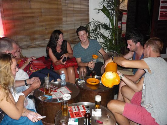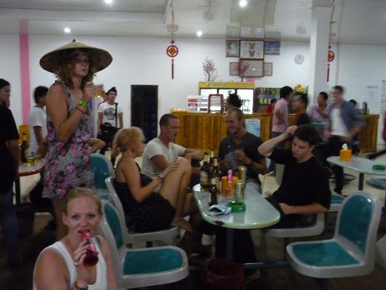 Und die Abende....tja...ich finds ja wirklich ein bisschen komisch, dass ich sowohl in Thailand wie in Laos meine ersten Tage bzw. Naechte nur am Ausgehen war und bin...aber gut, klar, all die Leute vom selben Boot im selben Ort..und ich hatte ja meine Komplizin Rose....