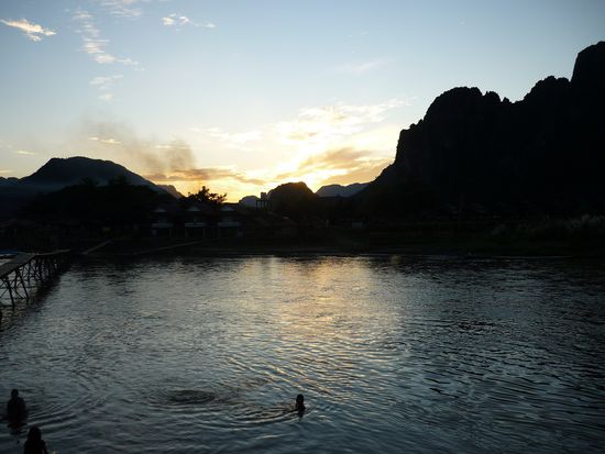 Fazit: Wir konnten von Glueck reden, dass wir nicht mit unseren Tubes im Finstern 1, 5 Stunden den Fluss runter mussten, sondern es von der Bar eine Tuk- Tuk Alternative gab... Das waer sonst schwierig geworden. Und wenn fuer uns schon, fuer einige der andern Chaoten erst recht.
