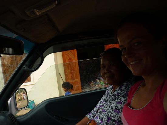 Naja, hatte dennoch eine lustige Fahrt mit dem 10- Uhr - sangthaew um 09. 40 Uhr, zusammen mit einer alten Frau auf den Beifahrer - Sitz gequetscht, Richtung gigantischer Kong Lo- Hoehle. Aber erst nachdem wir noch das halbe Dorf + Saecke + Kisten aufgesammelt und jedes Haeuschen auf der Strecke angefahren hatten.