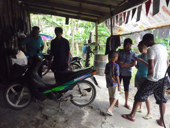 Trotz Nachfragen am Zapfhahn haben wir gleich mal froehlich den falschen Treibstoff getankt, unterwegs auf Eddys stotternde Kiste geschimpft und schoen bloed aus der Waesche geschaut, als das Moped, nach unserem Stopp an einem Local - Strand, garnicht mehr anspringen wollte.