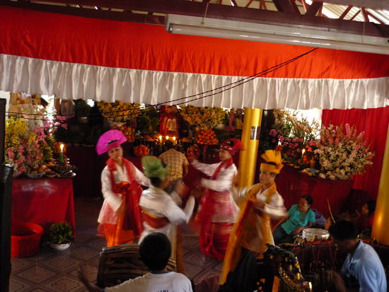 In einem Tempel fand grad eine Tanz - Performance mit Trommelmusik statt. Fuer den "nat", eine Art Geist...der Glaube daran ist in Myanmar parallel zum Buddhismus sehr verbreitet.