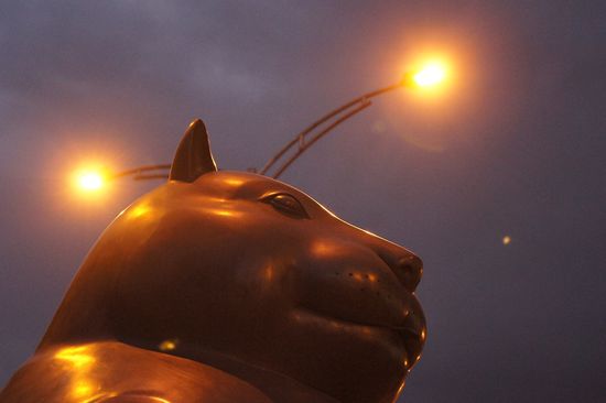 Auch die Strassenbeleleuchtung scheint sich dem Einfluss Boteroscher Rundungen nicht entziehen zu koennen....