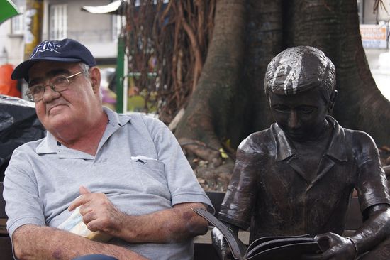 Beim Hochladen ging einiges Durcheinander, daher sind wir nun wieder auf der Plaza de Botero, ein beliebter Spielplatz
