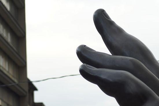 Daraufhin machte Botero eine zweite und setzte sie daneben, um zu demonstrieren, dass Frieden staerker ist als Gewalt