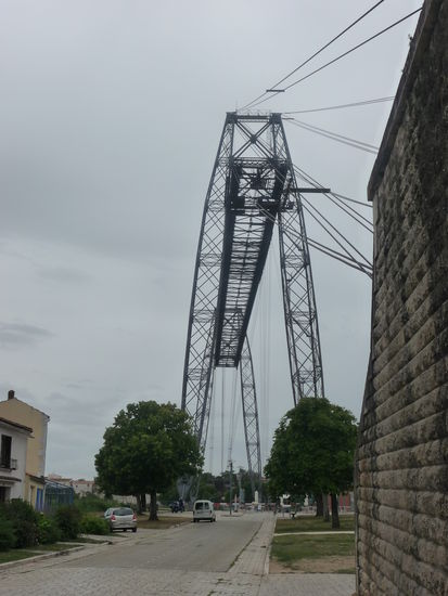 Also machten wir uns auf den Rückweg, nicht ohne jedoch zuvor noch einen Stopp an einem besonderen Bauwerk einzulegen, welches uns bereits auf der Hinfahrt neugierig gemacht hatte: die Schwebefähre über die Charente, oder besser - die Pont Transbordeur. Ein Ingenieurs-Bauwerk aus dem Jahre 1900, welches die beiden gegenüberliegenden Ufer der Charante gezeitenunabhängig miteinander verbindet. Heute gelangen zwar nur noch Fußgänger und Fahrradfahrer hinüber, aber sehenswert ist das Bauwerk allemal.