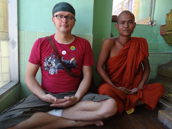 Der Mönch wollte danach weiter zur Chaukhtatgyi Pagode und da wir uns sowieso die riesige liegende Buddha Statue dort anschauen wollten, hat er uns netterweise mitgenommen-war wirklich beeindruckend du passte auf kein Foto.