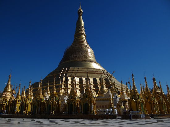 Schiwi und ich sind danach alleine zur berühmten Shwedagon Pagode gegangen, diese ist 2500 Jahre alt und angeblich liegen unter dem Hügel einige Überreste Buddhas. Abgesehen davon wird man an diesem Ort fast blind von dem ganzen Gold, sage und schreibe 53 t Blattgold wurden hier angesammelt.