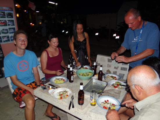 Valentin und seine sympatische Frau Lamyai sind auch ein Hauptgrund dafür gewesen, dass wir unsere Weiterfahrt nach Kambodscha 3 mal verschoben haben und bestimmt 2 Kilo an Speck zulegten,denn Valentin war früher Koch und oft wurden wir mit selbstgeräuchertem Lachs, vietnamnesischem und thai essen, fangfrischem Fisch, hausgemachten Pasteten etc, verwöhnt-mir läuft bei dem Gedanken daran schon wieder das Wasser im Mund zusammen!