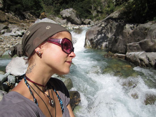 Die folgenden Tage sind dann etwas weniger spannend. Ich spazier etwas allein durch die Gegend (befolge aber doch den Rat, nicht zu weit in den Wald zu marschieren, weil immer noch Bären und Tiger unterwegs sind) oder werde von den Jungs begleitet. Das Lager verlegen wir weiter flussaufwärts, übernachten aber doch nicht wie gedacht in den Bergen selbst, weil es einfach schon zu kalt ist. Geduscht wird im kalten Fluss (was für EuropäerInnen, die ja nicht viel Haut zeigen sollten, mitunter ein Abenteuerliches Unterfangen ist . Aufgeweckt werde ich von Affen oder Krähen und in den Schlaf gesungen werde ich erst von meinen Begleitern und dann vom Fluss selbst, der in der Nacht einen völligen anderen Klang hat, als am Tag. Stundenlang bin ich davor gesessen und war vollkommen fasziniert. Ansonsten steht Kartenspielen und Relaxen am Programm und die Jungs ärgern sich schnell. Acht Jahre in der außerschulischen Kinder- und Jugendarbeit haben meinen Eifer am Spielen ja immer unterstützt und nach der ersten Runde bin ich voll in meinem Element .