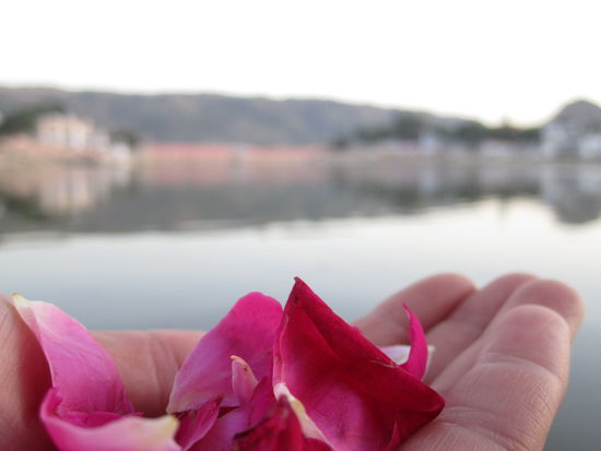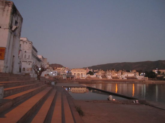 In Puskhar angekommen werde ich recht bald vor den ganzen jungen Männern und Kindern gewarnt, die jedem Blumen zum Opfern andrehen wollen. Ich mache mich also auf den Weg zum See und seinen Ghats. Vorher spaziere ich noch über den Markt und werde von feiner Goa-Musik mit indischen Klängen aus endlich mal annehmbaren Boxen angelockt!!! Schon lang nicht mehr gehört ... hmmmmmmmm.