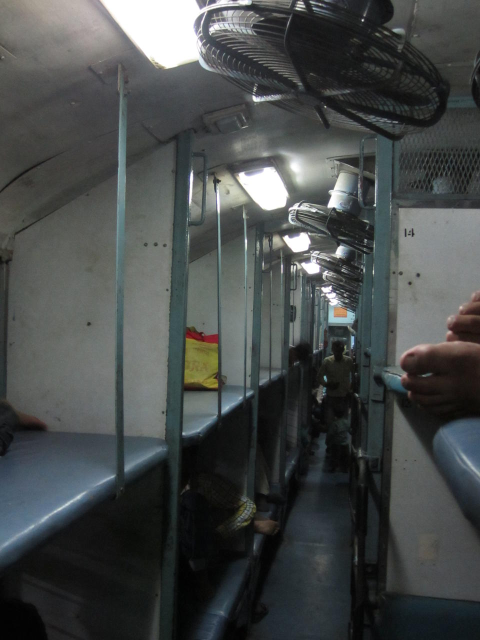 Der Weg zum Bahnsteig hingegen wird zum Abenteuer. Erstens bin ich mir nicht sicher welche Plattform, der Zug wird aber ausgerufen und ich finde meinen Weg dann doch. Zweitens rennen mir dann aufgebrachte InderInnen entgegen und ich frag mich warum. Es dauert nicht lange und der Grund steht vor mir. Auch ich ergreife dann mit meinem Gepäck rasch die Flucht. Eine Horde aufgebrachter, brüllender und fauchender Affen versperrt den Weg und die Treppe. Die Viecher ziehen ab, als sie merken, dass es hier nichts zu holen gibt. Und ich komme gerade rechtzeitig runter als der Zug einfährt. Leider steht kein Bahnhofsangestellter unten und ich muss mich auf die Auskunft der anderen Passanten verlassen und suche meinen Schlafplatz. Den Rat eines jungen Mannes, den ich im Zug von Agra kennenlernte und der mir jede Menge Räucherstäbchen als Andenken ins Hotel brachte , hatte ich angenommen, und mir einen Platz ganz oben reserviert. In der non A/C Klasse reisen hauptsächlich Einheimische und oben habe ich wirklich fast meine Ruhe. Mein "Abteil" teile ich mir mit einer Großfamilie (sechs Monate bis geschätzte 65 Jahre) und da der Zug recht oft stehen bleibt und die nicht scharf auf mein Gepäck sind, beschließe ich, mir doch einmal die Beine zu vertreten. Weit komme ich ohnehin nicht, zu spät ausgestiegen, also vorne raus und hinten in den rollenden Waggon wieder rein. Schlafen kann ich trotz Fan-Lärm recht gut, nicht viel, aber es reicht.
