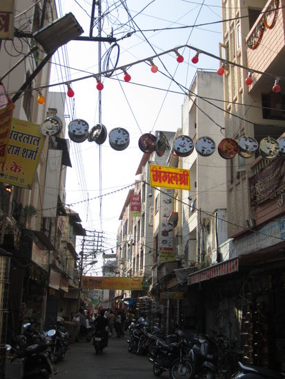Die restliche Nacht vertreiben wir uns mit Witzen, Musik und Kartenspielen. Die Zeit vergeht schnell und der Zug erreicht relativ pünktlich den Bahnhof. Leider werde ich nicht wie versprochen abgeholt und mache mich selbst auf den Weg. Die Leute hier sprechen kaum Englisch, also gestaltet sich die Suche etwas schwierig, gelingt dann doch und ich finde ein Hotel gleich in der Nähe des Bahnhofs. Am Nachmittag spaziere ich etwas gelangweilt durch die Gegend. Die meisten Stände und Geschäfte haben auf Grund von Diwali noch geschlossen und es gibt vorerst nicht viel zu tun. Auch nicht so schlimm, denn ich wollte ja ohnehin am nächsten Tag nach Omkareshwar. Also erkundige ich mich noch nach dem Bus und will zurück.