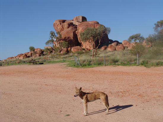 Auf dem einfachen Campingplatz übernachten wir und nur das Heulen der Dingos hören wir. Um