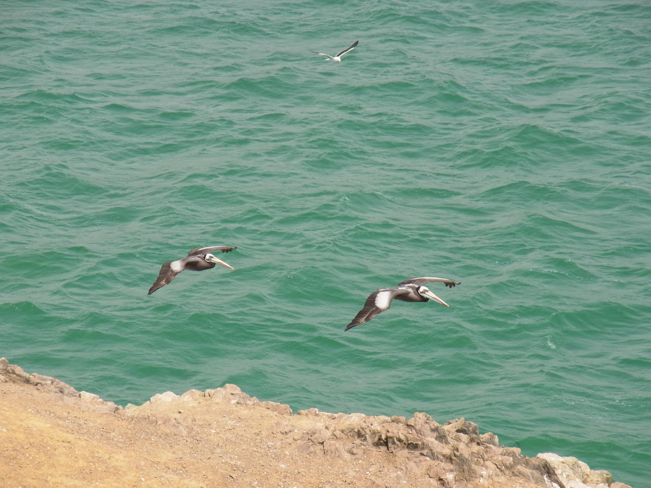 Dafür erklimmen wir den hiesigen Felsen und schauen den Pelikanen beim Fliegen zu.